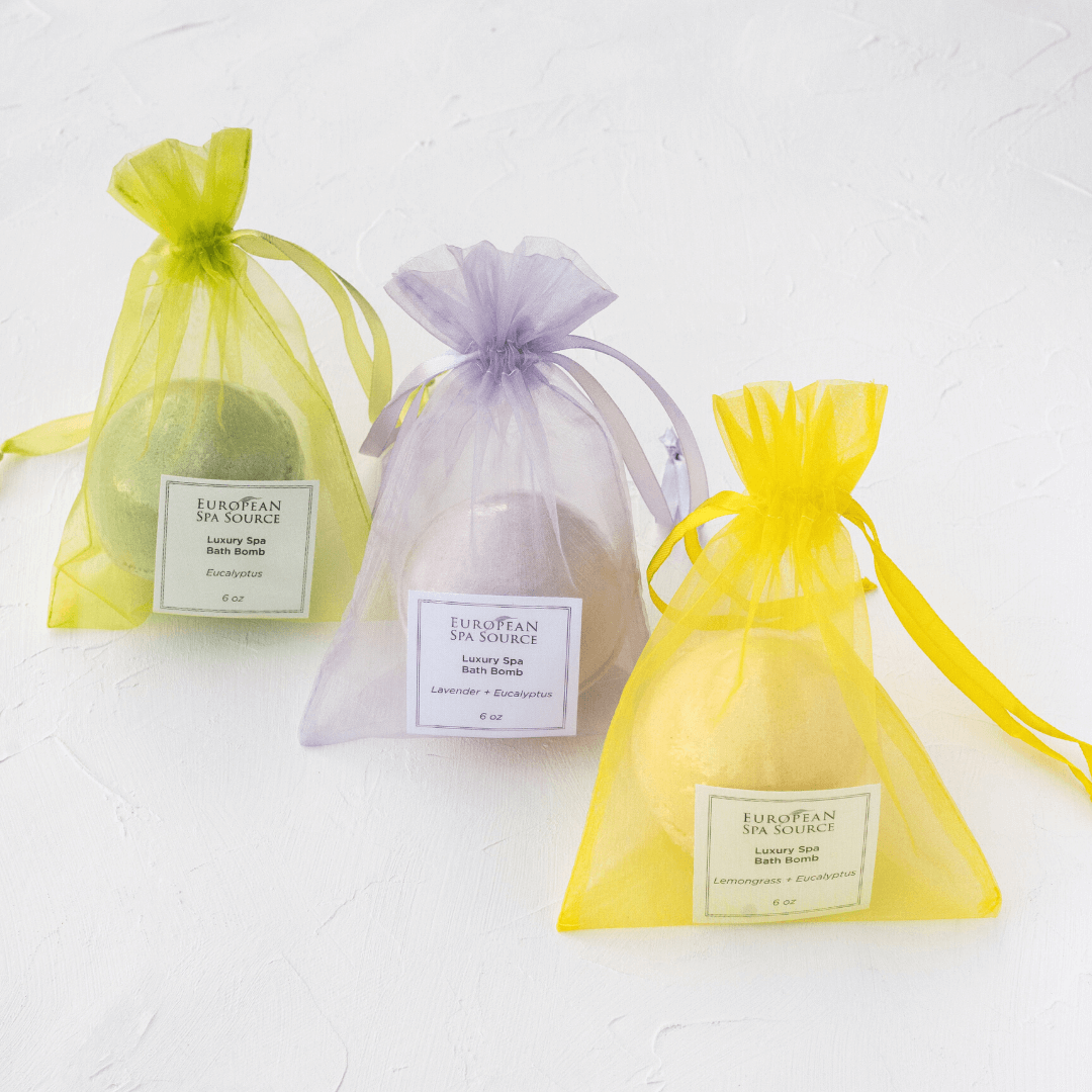 These luxurious bath bombs are made with essential oils, not artificial fragrances. Simply drop the bath bomb into a warm bath and allow the aroma to soothe you as you soak, leaving your skin incredibly soft. Each three-piece trio includes our three most popular scents - eucalyptus, eucalyptus and lavender, and eucalyptus and lemongrass.